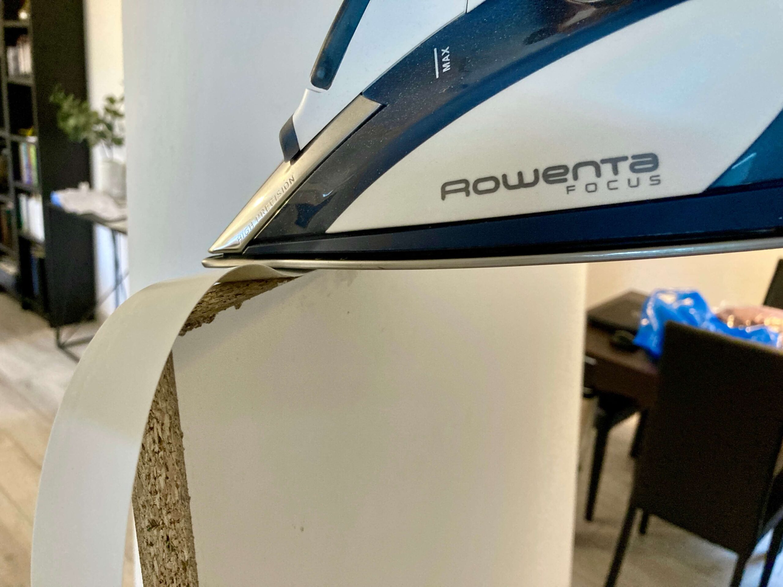That’s why, while you’re at the store, remember to pick up some iron-on edge banding. This is a simple laminate strip with adhesive on the back that bonds to the panel edge when heated with an iron (after you’ve sanded and leveled the edge).