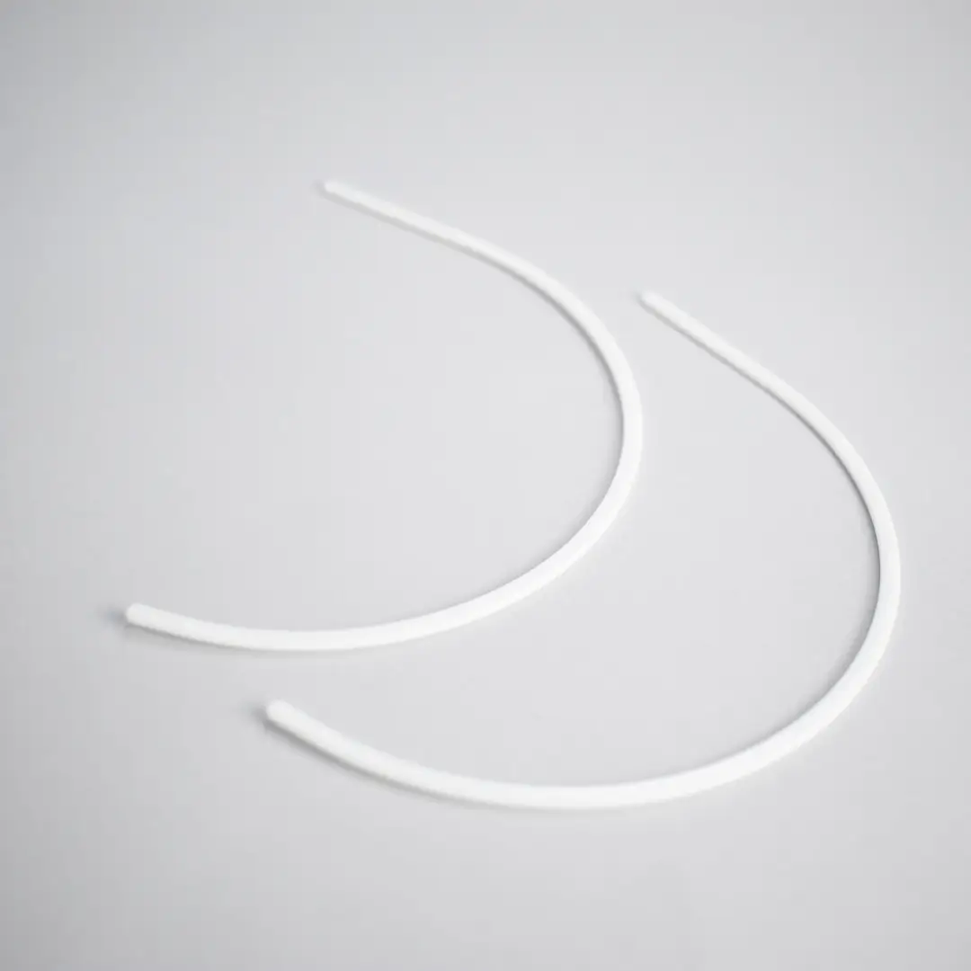 White plastic bra underwires are a viable alternative to classic metal underwires. They are ideal for those seeking lightness, flexibility and increased resistance to moisture. Available in 5 sizes, from the 1st to the 5th, they are sold in pairs (one right and one left), ready to be inserted into your sewing projects.
