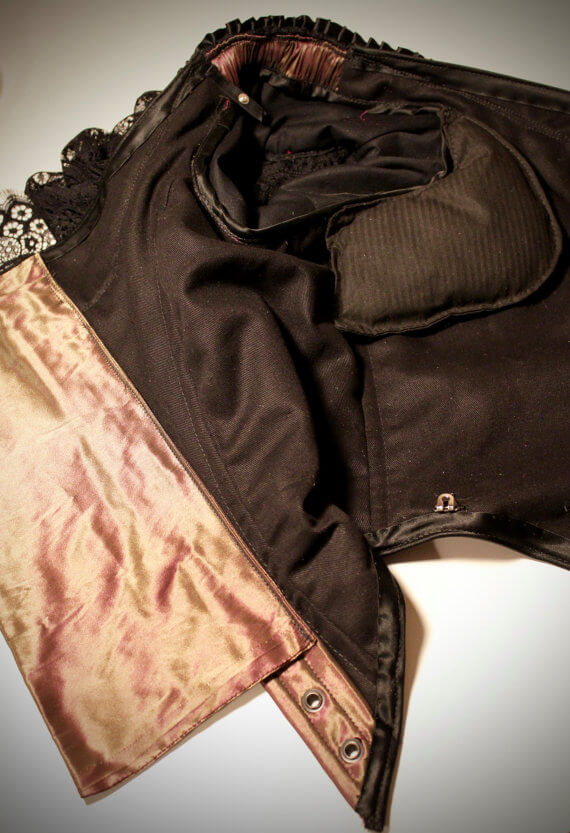 Sono inoltre presenti due ganci che permettono di assicurare il corpino alla gonna facendo in modo che non si muova .