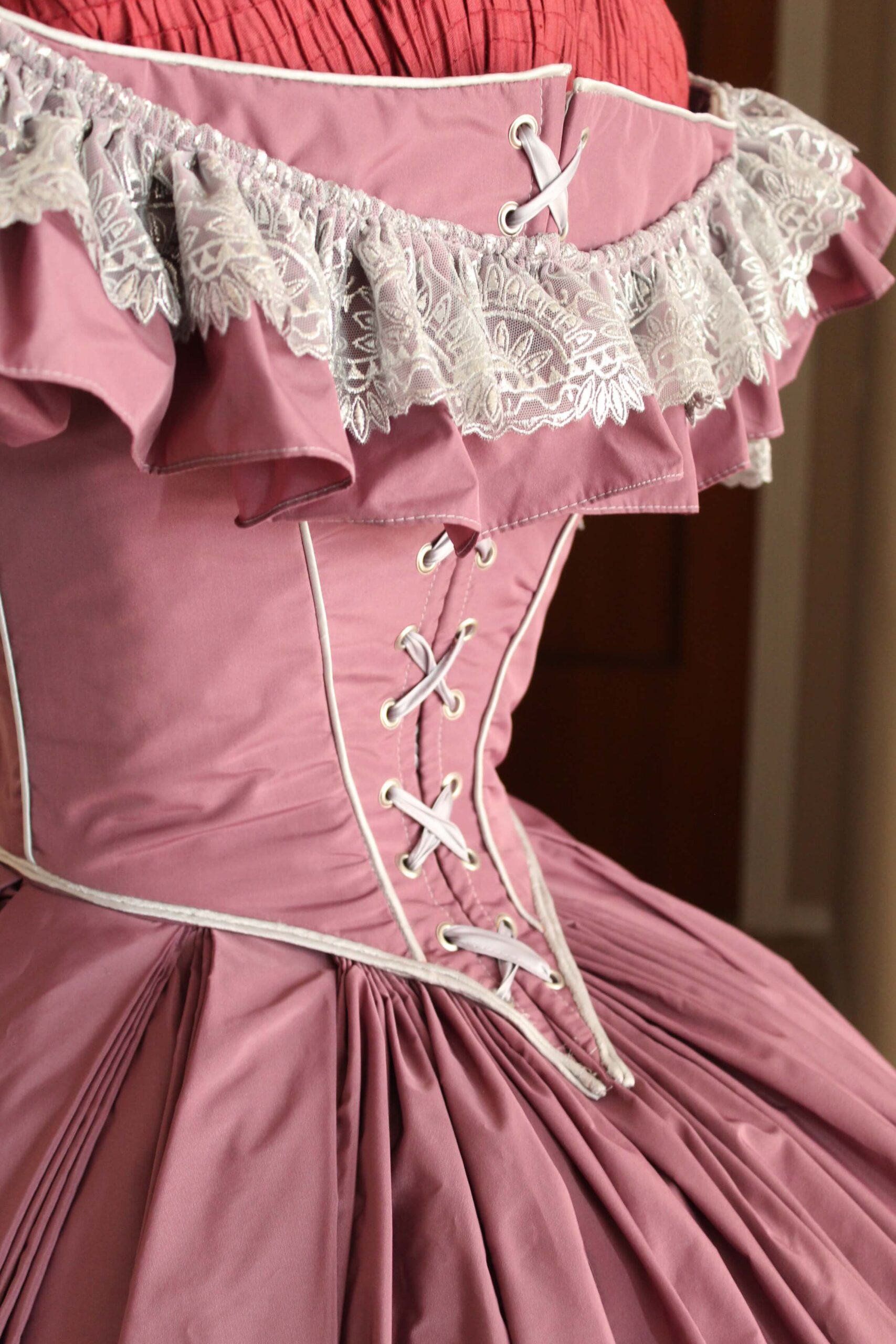 L’ Abito da Ballo Vittoriano 1860 modello “Malva” può essere arricchito indossando l’intimo vittoriano e donandogli cosi un tocco di classe e di autenticità.