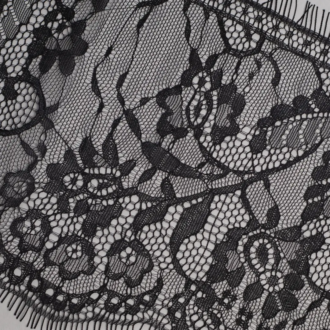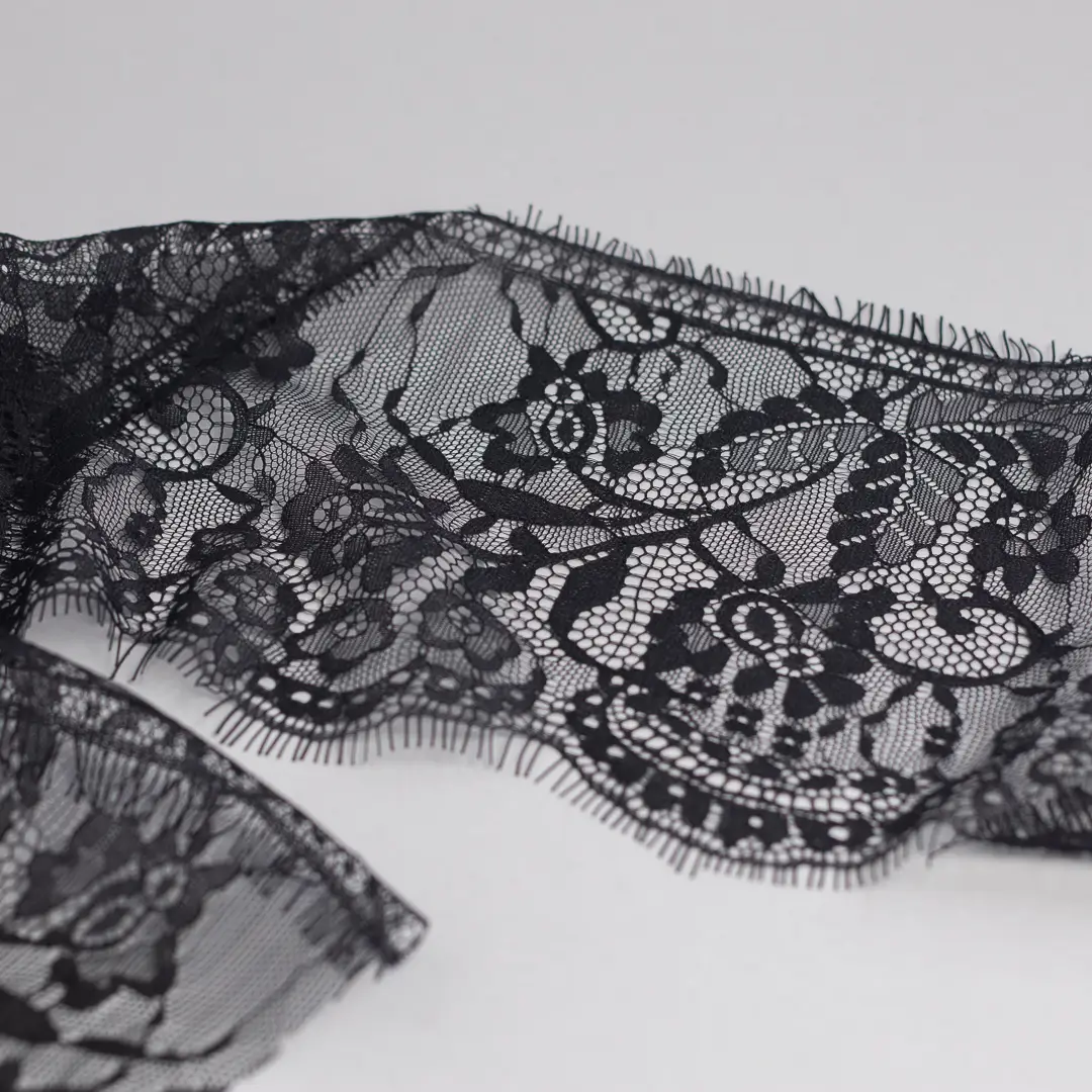 Grazie alla sua trama delicata e al colore nero, si presta benissimo anche per la decorazione di costumi storici, teatrali o d’epoca, dove è richiesto un effetto ornamentale ricercato ma sobrio. Può essere abbinato a tessuti come tulle, organza, raso o cotone leggero, per creare giochi di trasparenza o contrasti di texture.